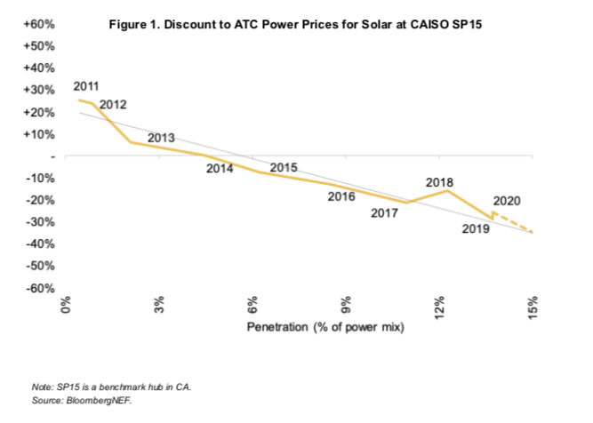 3) 28-35% discounts for solar power compared to average CAISO (California) hub prices, and the discounts are increasing
